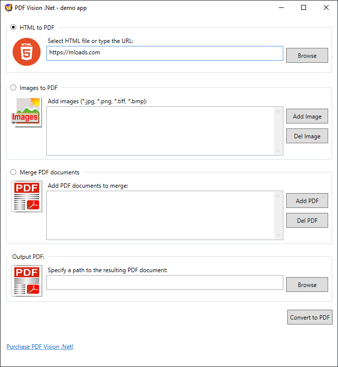 PDF Vision .Net — программа, которая позволяет конвертировать различные типы файлов в PDF или файлы картинки разного формата. Предназначена для использования в приложениях ASP.NET или WPF (Windows Presentation Foundation), что делает ее идеальной для разработчиков, которые хотят создавать PDF-документы «на лету».