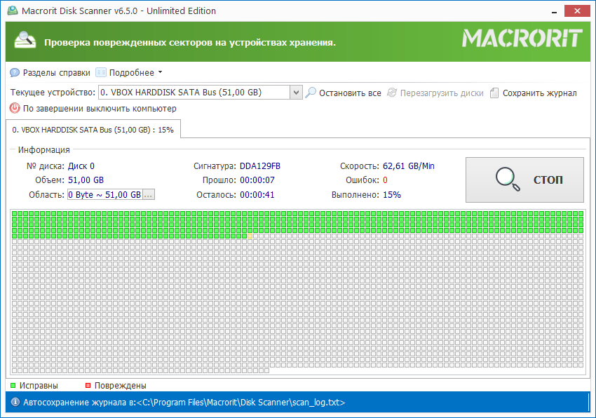 Macrorit Disk Scanner Unlimited Edition - инструмент для проверки жесткого диска и выявления на нем битых секторов. Такой тест полезен для оценки качества вашего винчестера, т.к. чем больше поврежденных секторов, тем больше вероятность того, что данные на диске могут потеряны.