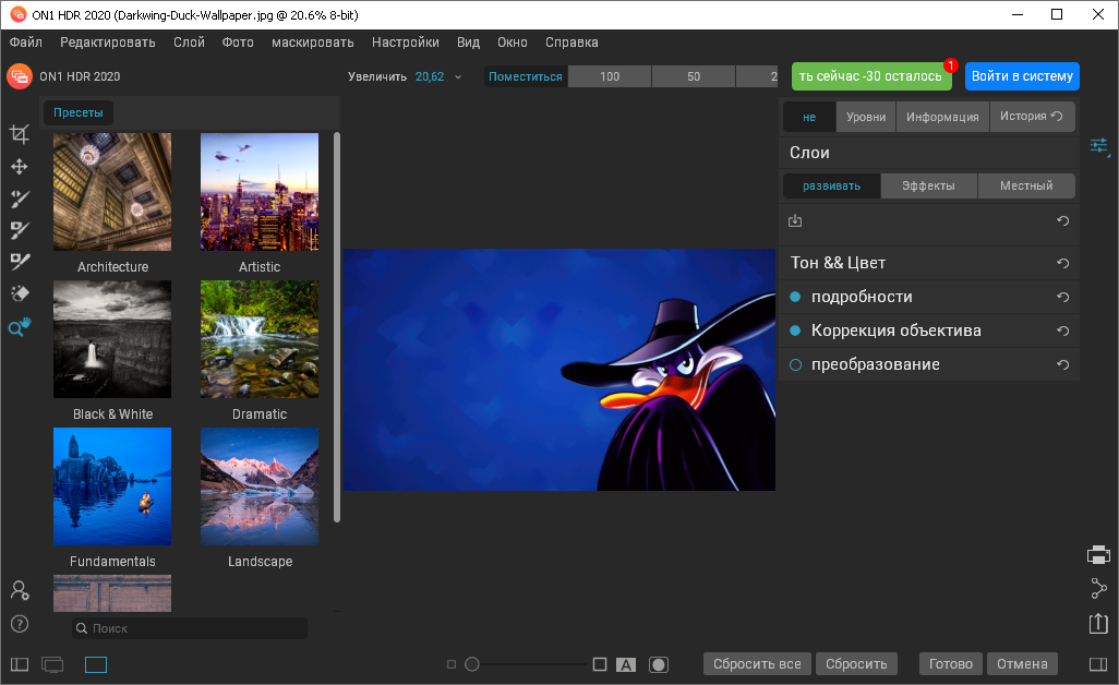 Лицензия: ShareWare (активация ON1 HDR кряк заменой без ввода ключа)