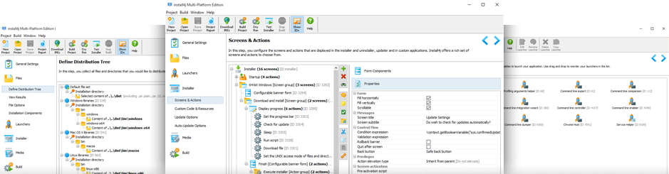 Install4j - крутая программа для создания установочного файлы для ваших Ява-приложений. а значит созданный вами файл будет работать на разных платформах, но учтите, он работает только с Java. Думаю всем понятно, что первое впечатление от запускаемого софта складывается на этапе его инсталляции и если установочный пакет выглядит красиво, функционально, стильно, он удобен, понятен, приятен, то половина дела уже в кармане, вот именно такие пакеты вы сможете создавать воспользовавшись данным приложением. После запуска пройдете через несколько шагов, в итоге получите превосходный результат, только Русская поддержка отсутствует и это может не всем понравится, ведь надо заполнять множество полей и не все пользователи сразу разберутся, а так в целом нареканий больше нет.