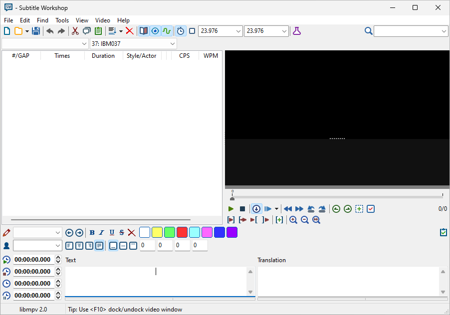 Вы не сможете ничего написать, пока не нажмете Файл > Новый субтитр. Как только вы это сделаете, в нижней части экрана появится место для создания субтитров. Хорошая идея - сначала расположить видео в той части, в которую должен войти субтитр, и нажать кнопку Set Start Time (Alt+C). Затем введите текст подзаголовка и нажмите Задать время окончания (Alt + V). (Обе кнопки Set Start и End Time находятся на элементах управления под видео).
