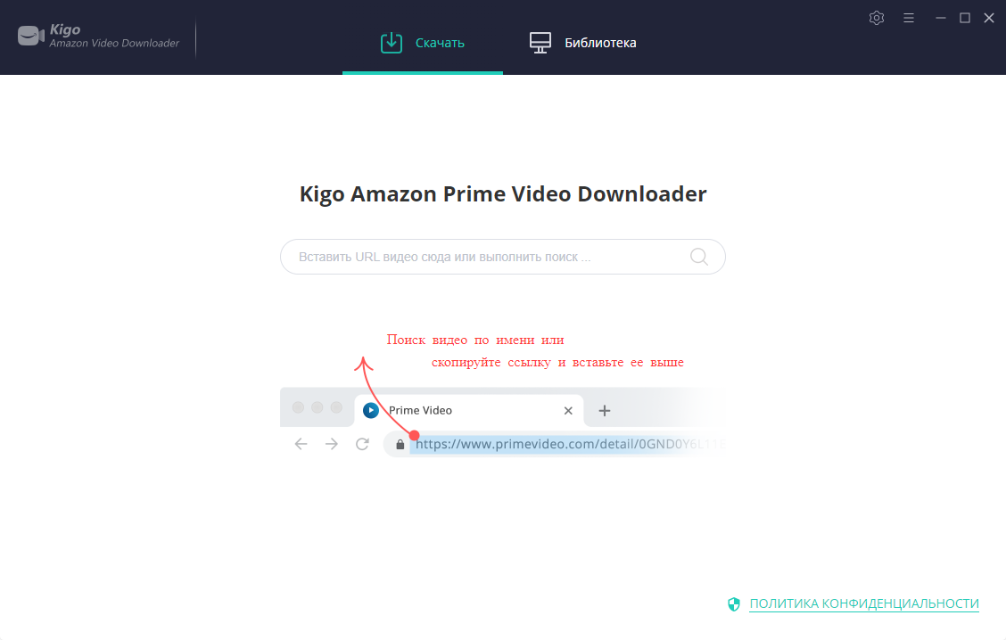 Amazon Prime является хорошим сервисом для просмотра фильмов и сериалов. Однако, несмотря на поддержку широкого выбора, вы можете только смотреть все опубликованные там материал, скачивание ограничено, здесь на помощь может прийти программа Kigo Amazon Prime Video Downloader. Запомните, что сначала вам нужно войти в систему под своим логином в Amazon Prime, иначе вы не сможете пользоваться функциями этого приложения. Как только этот шаг будет выполнен, вы можете начать поиск ваших любимых фильмов, эпизодов или передач, пока не найдете тот, который хотите скачать, так же можно просто вставить или перетащить URL-адрес видео в специальное поле.