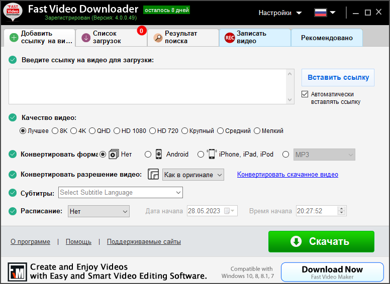 Скачать Fast Video Downloader 4.0.0.51 + Repack + Portable можно по ссылке ниже