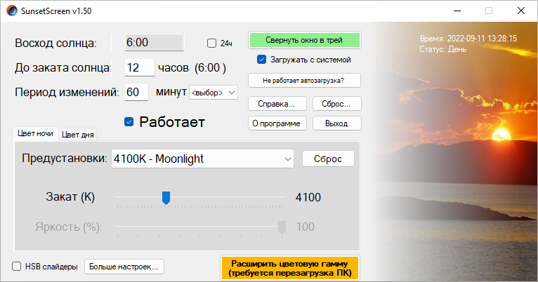 Скачать SunsetScreen 1.50 + Repack + Portable можно по ссылке ниже